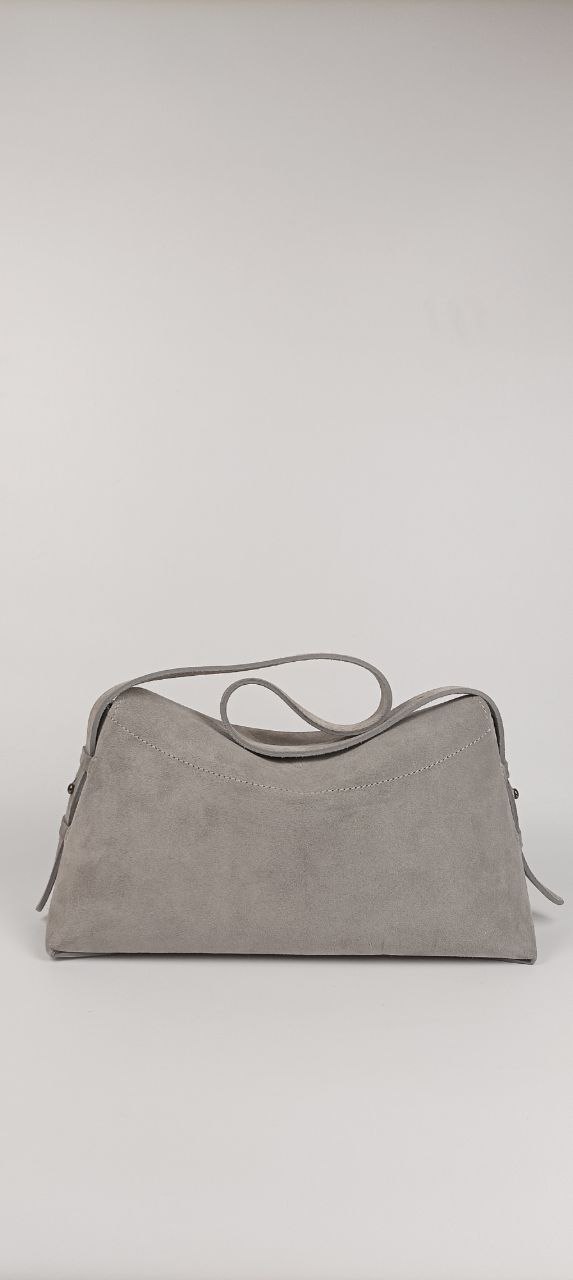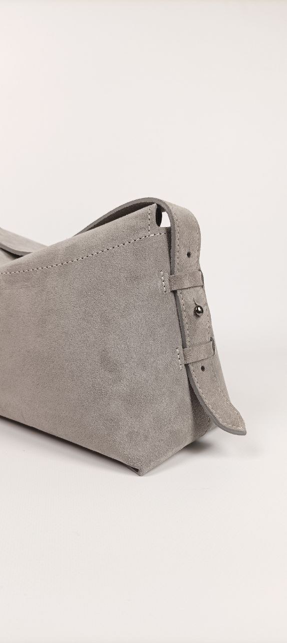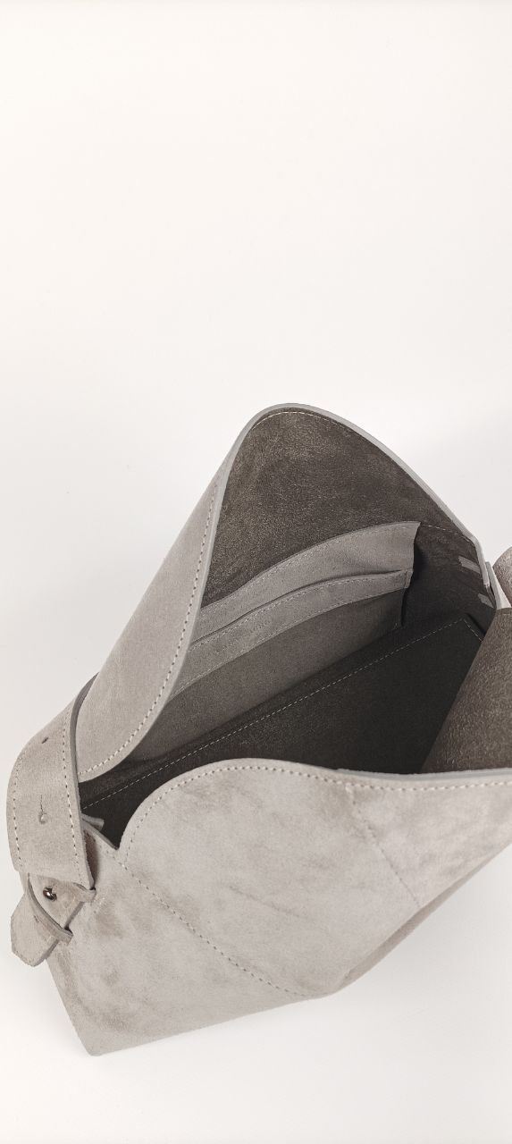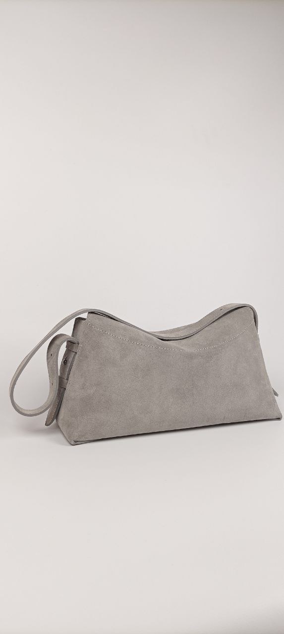 The Deflection bag is an elegant model with soft lines and a modern minimalist aesthetic. Made of natural suede, decorated with a gray velvet lining. Inside there is a pocket for a phone. The clasp is a hidden magnet. The strap is adjustable in length. The bag keeps its shape. The bottom is reinforced!