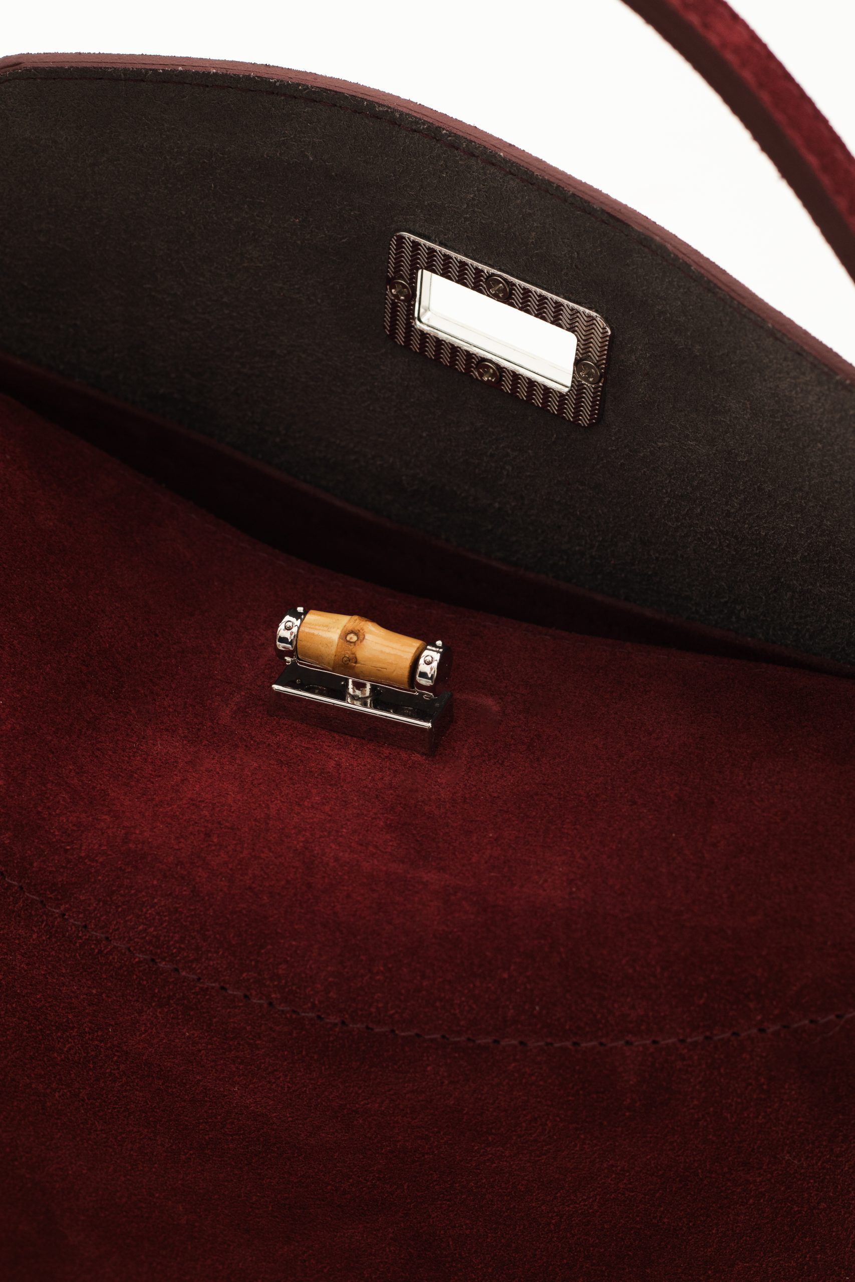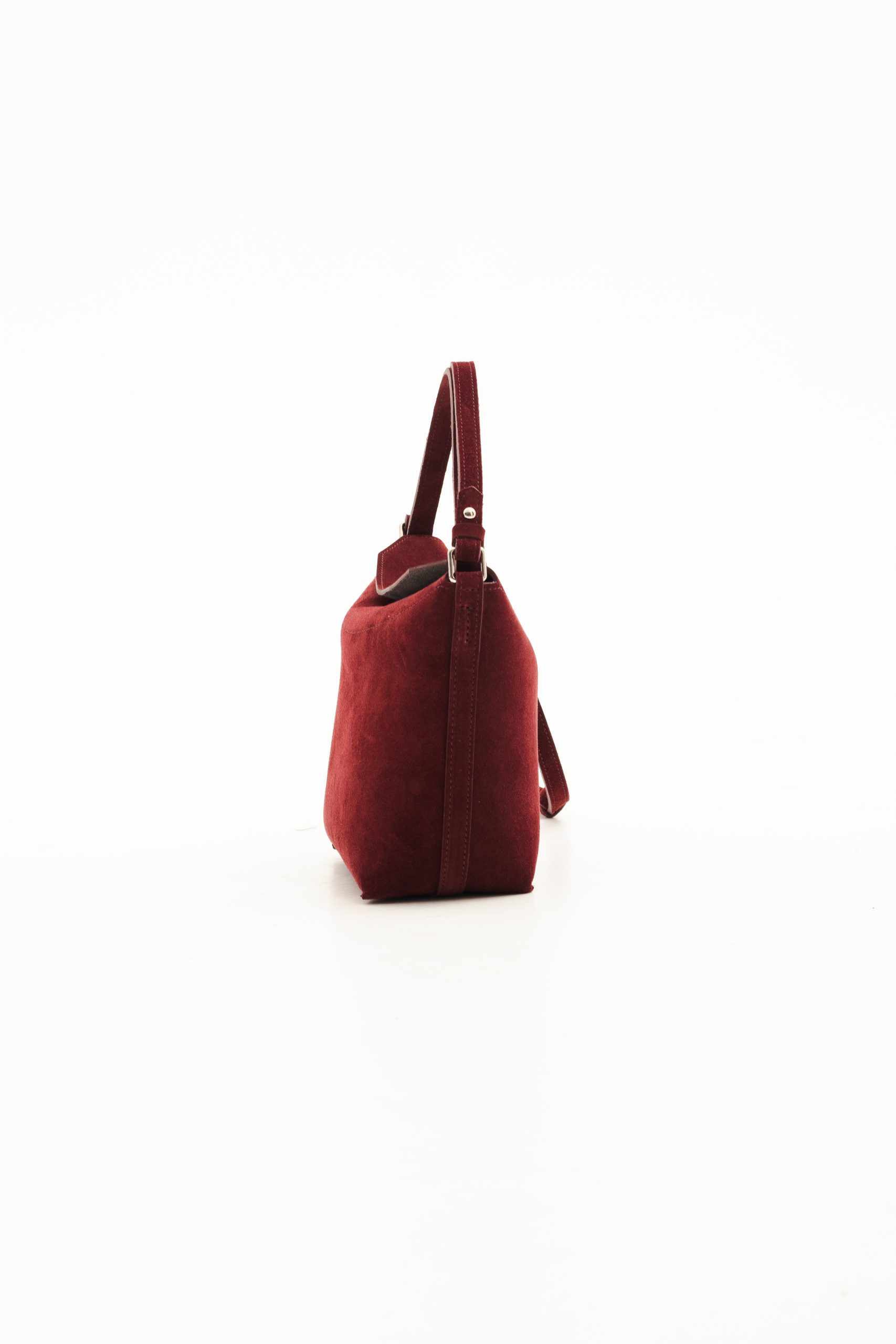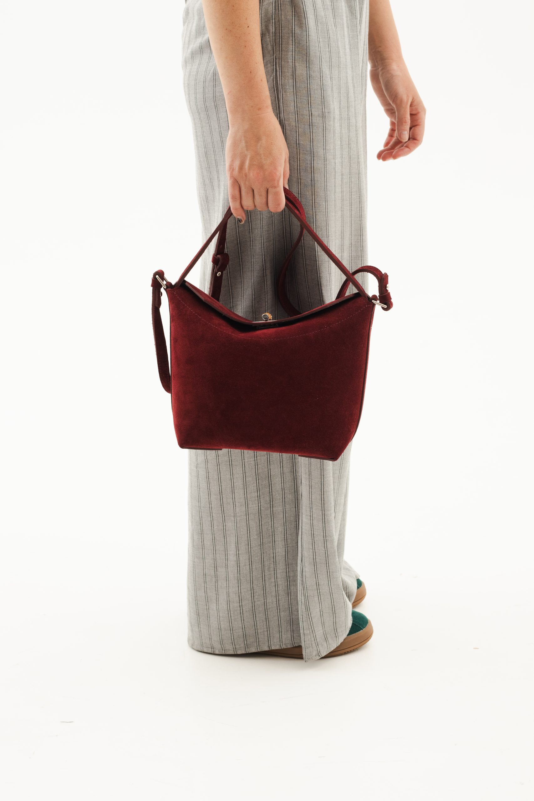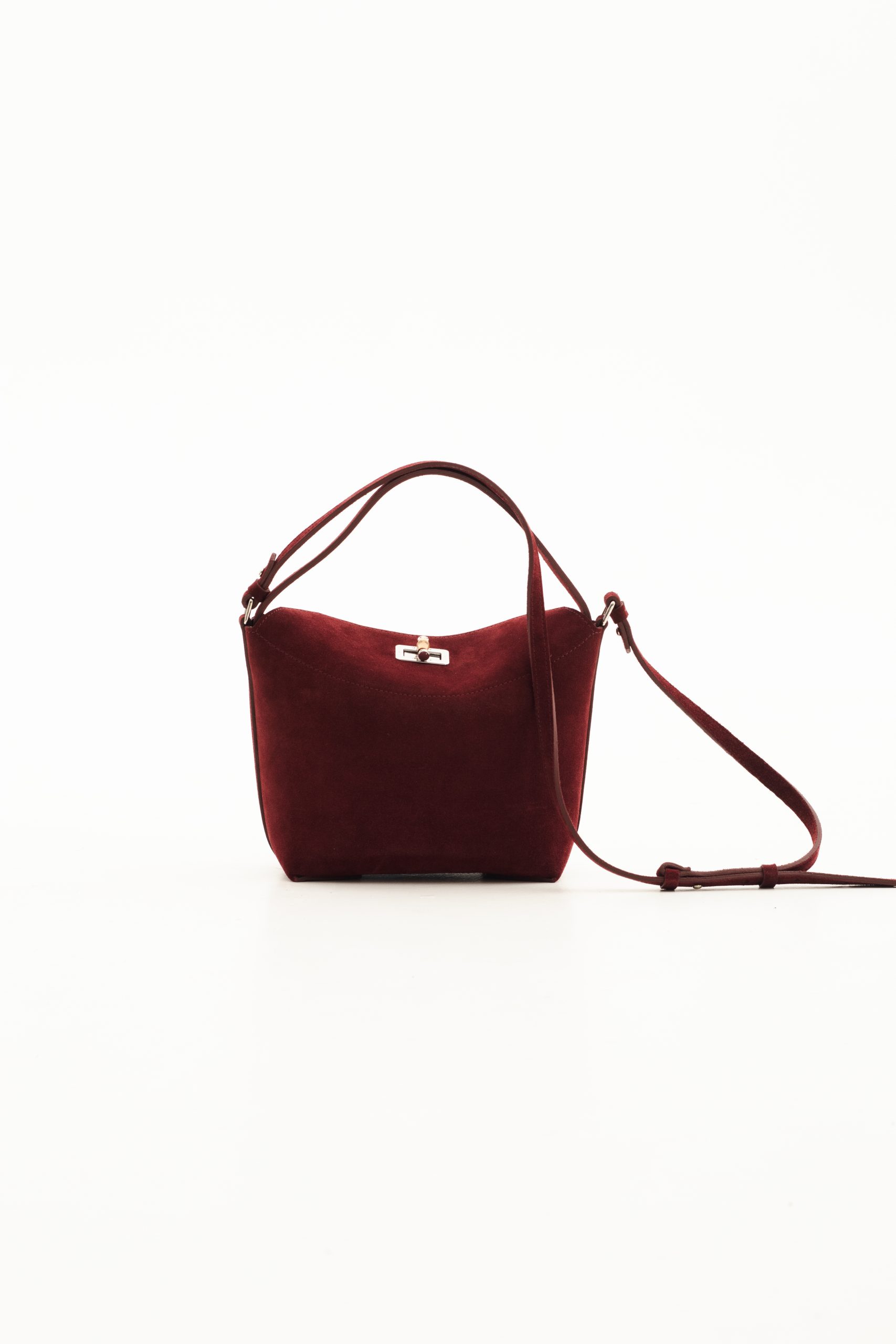 E S K E – a bag that makes you fall in love at first sight. Simplicity. Soft texture. A shape that does not need words. Swivel clasp with a wooden insert. The strap is adjustable in length. Made of natural suede. A spacious inner compartment and a pocket add convenience to this accessory.