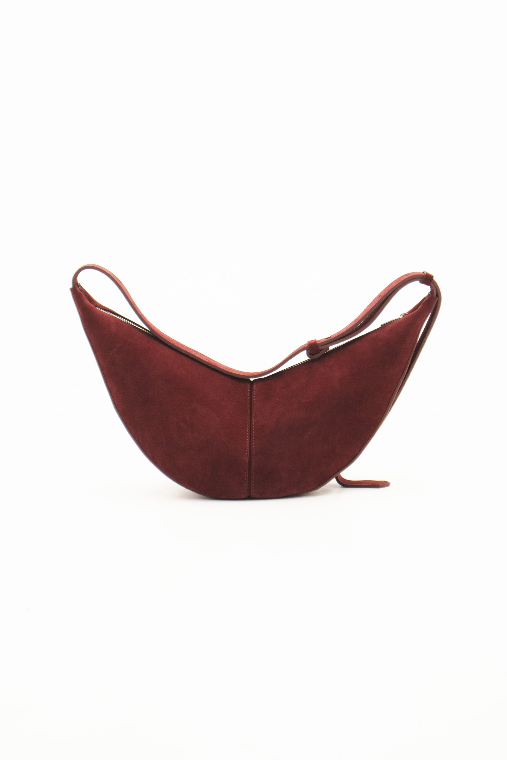 MARAMA bag – clean lines, soft texture, calm in shape. Created to remain in memory. Sling bag with soft lining and zipper closure. Thanks to its shape, it easily adapts to your body. The strap is adjustable in length. Made of natural suede. A spacious internal compartment and pocket add convenience to this accessory.