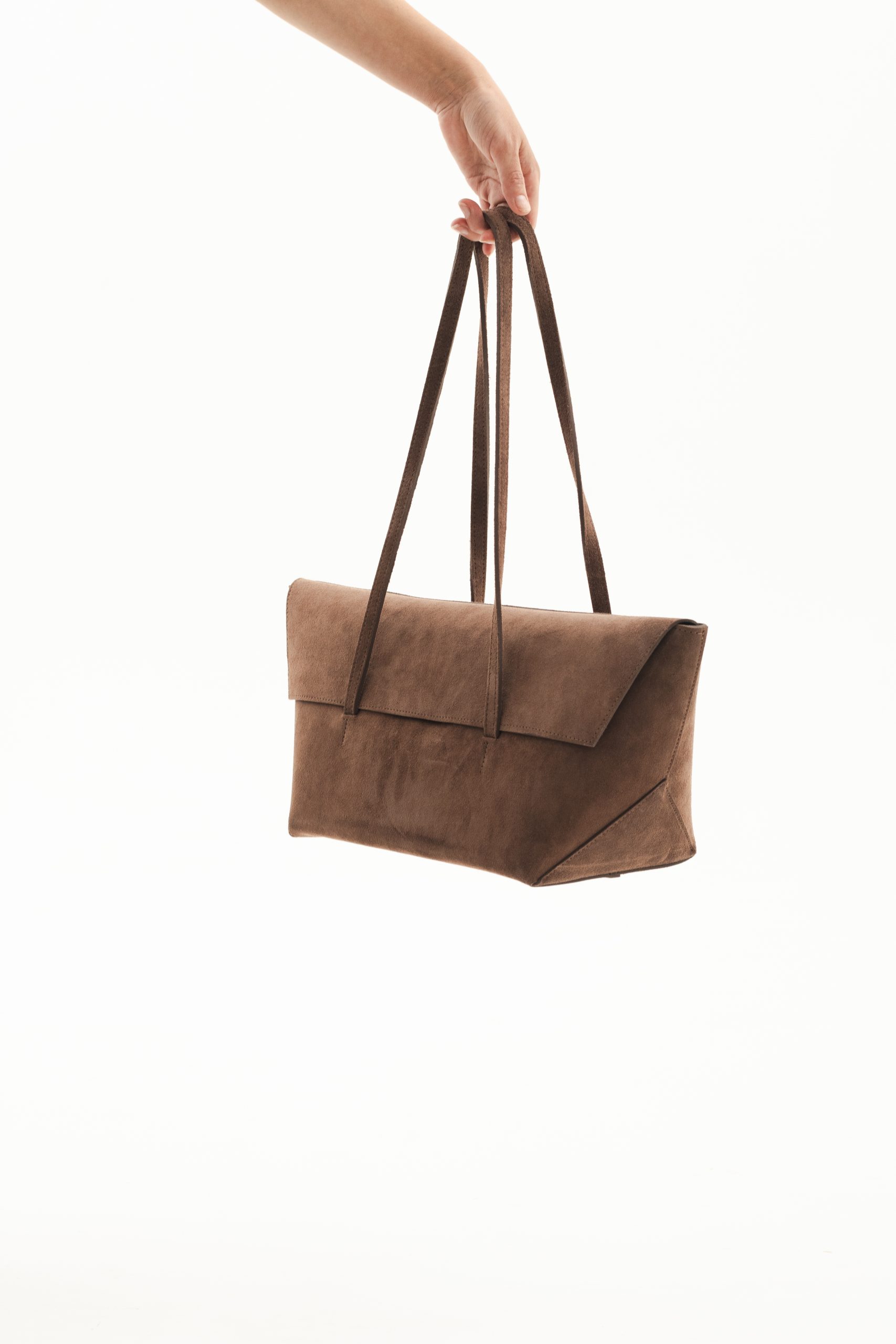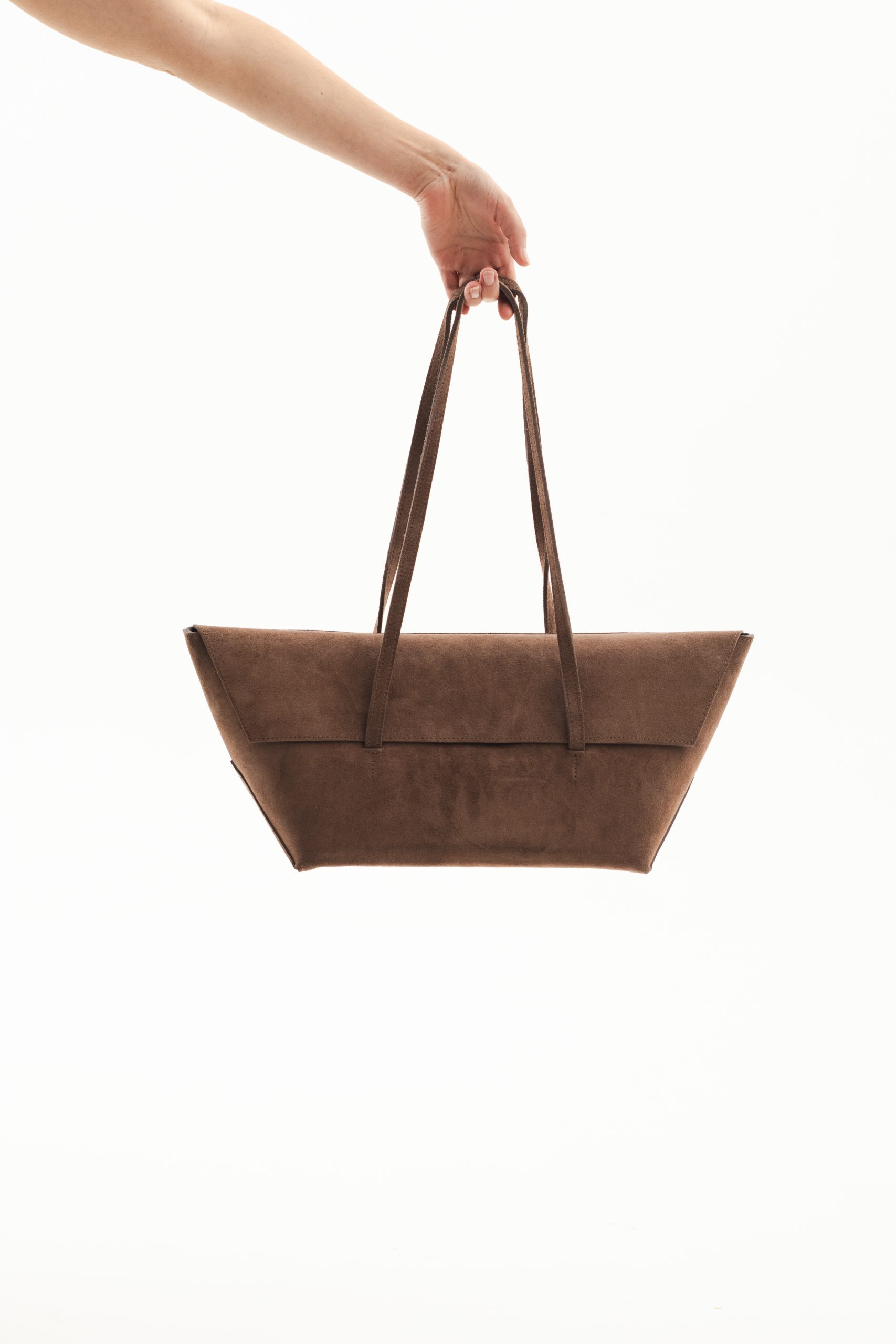 Avullore big – це мінімалістична сумка-тоут у формі човна поєднує в собі сучасну форму та функціональність. Виготовлена з натуральної замші. Просторий внутрішній відділ та подвійна кишеня додають зручності цьому аксесуару. Потаємні магніти виконують функцію застібки. Можна носити клапаном наверх чи заправивши його всередину сумки. Ручки прошиті по периметру та надійно зафіксовані подвійним швом. Висота ручок від верху сумки 28 см.