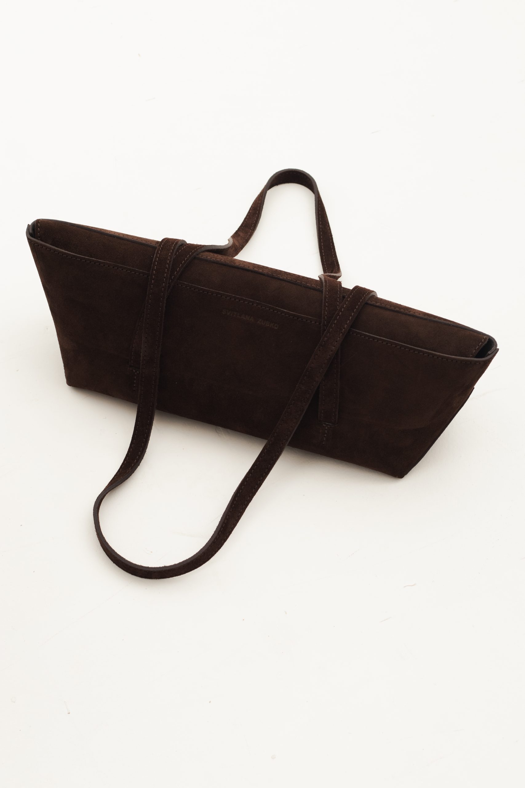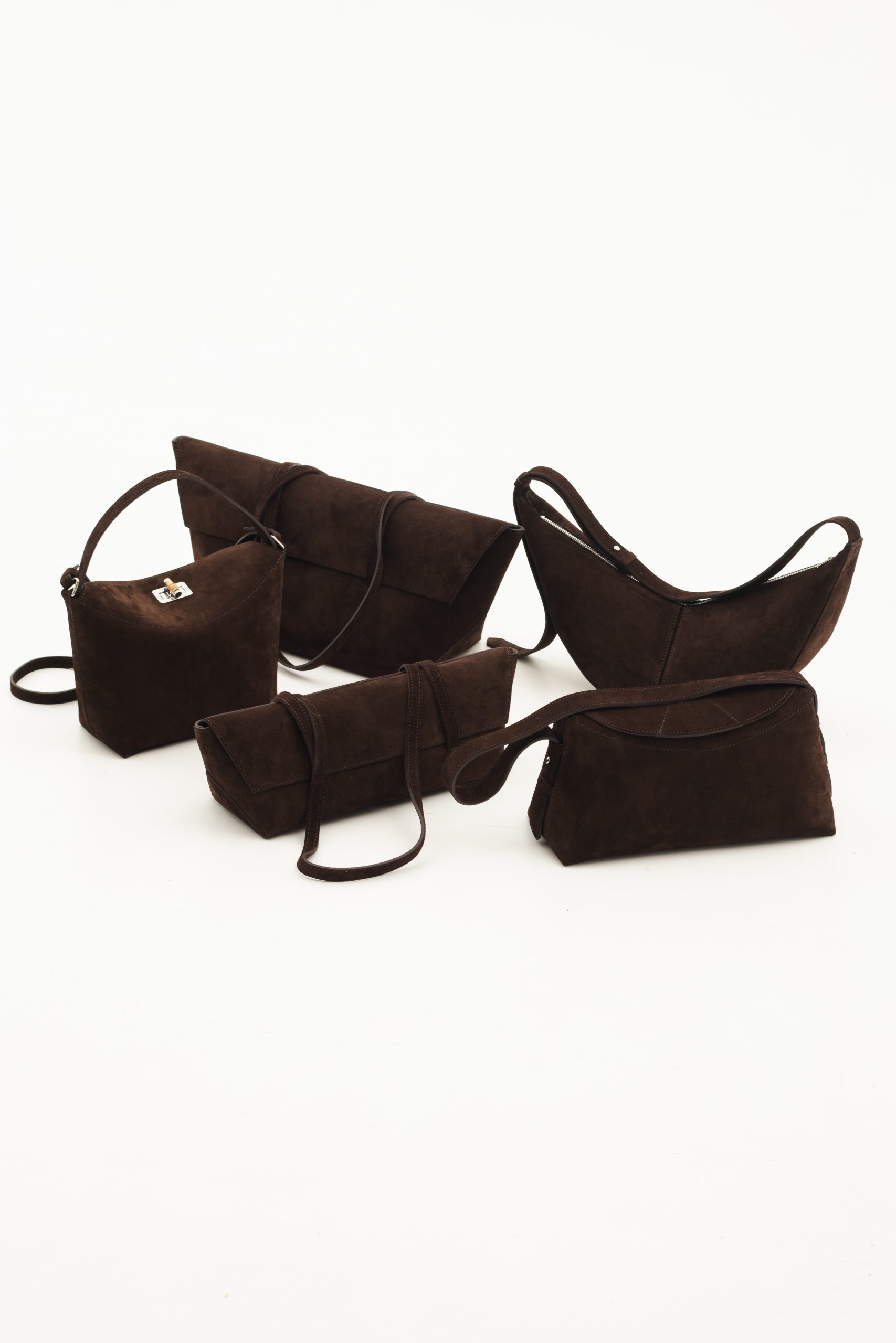 Сумка “Avullore”  виготовлена з натуральної замші, оздоблена сірою оксамитовою підкладкою.