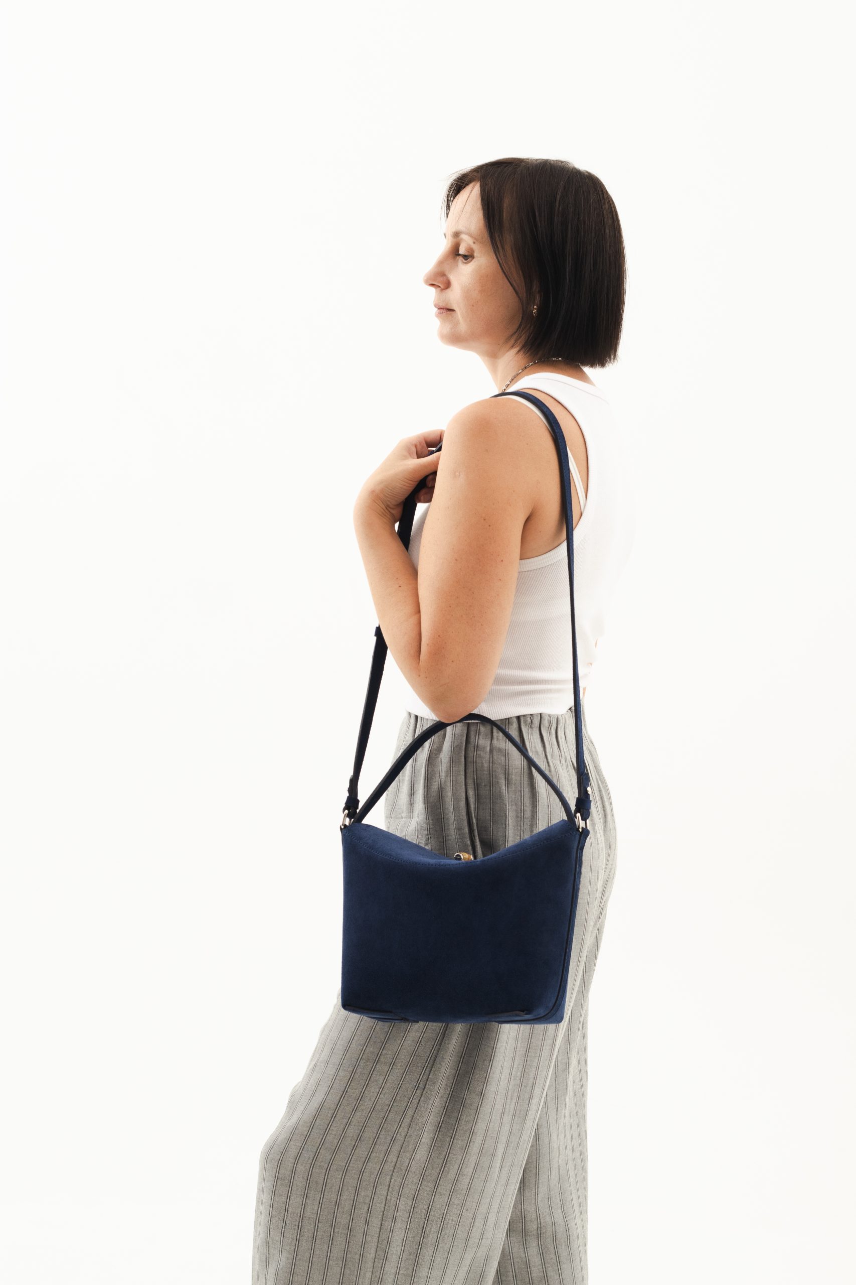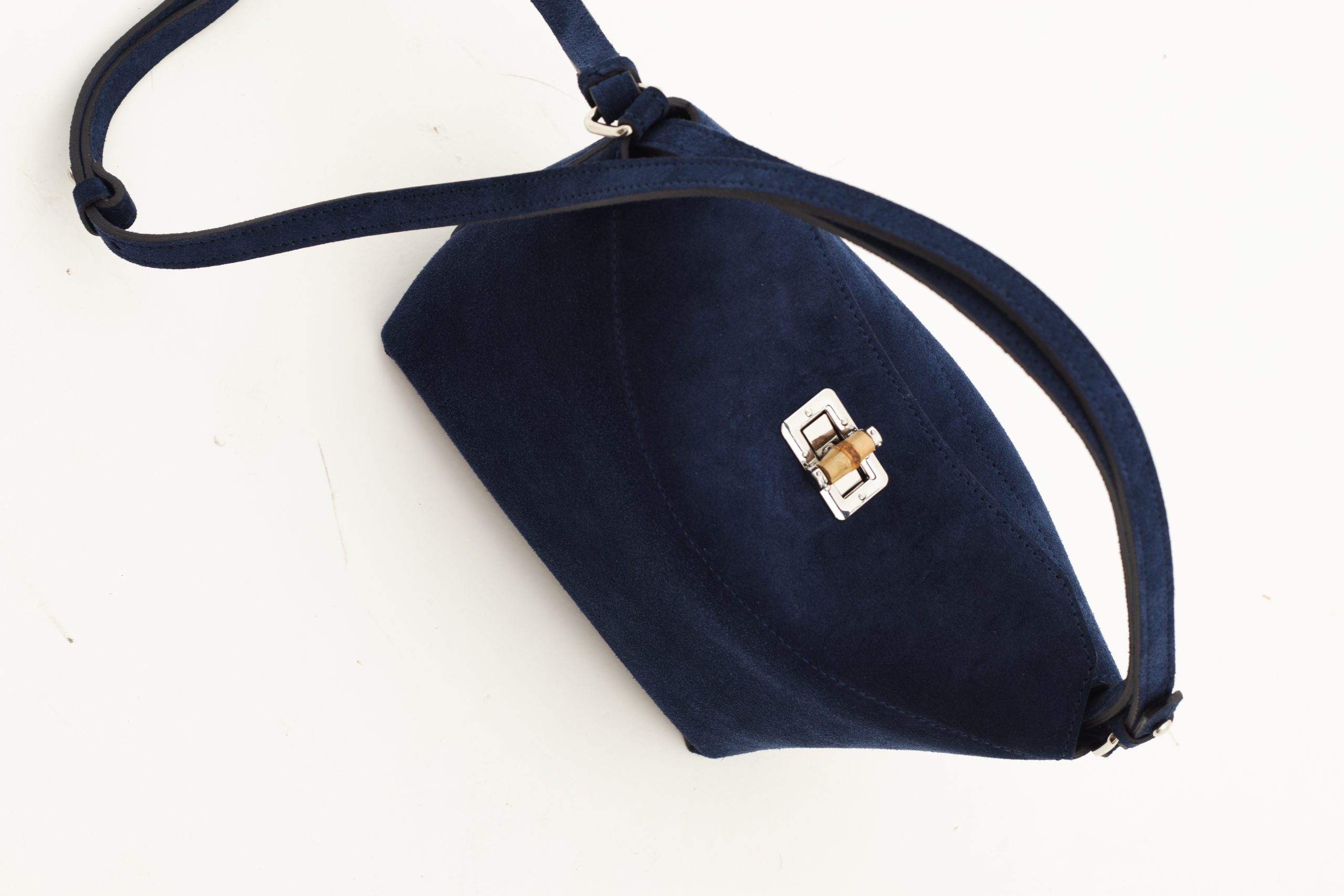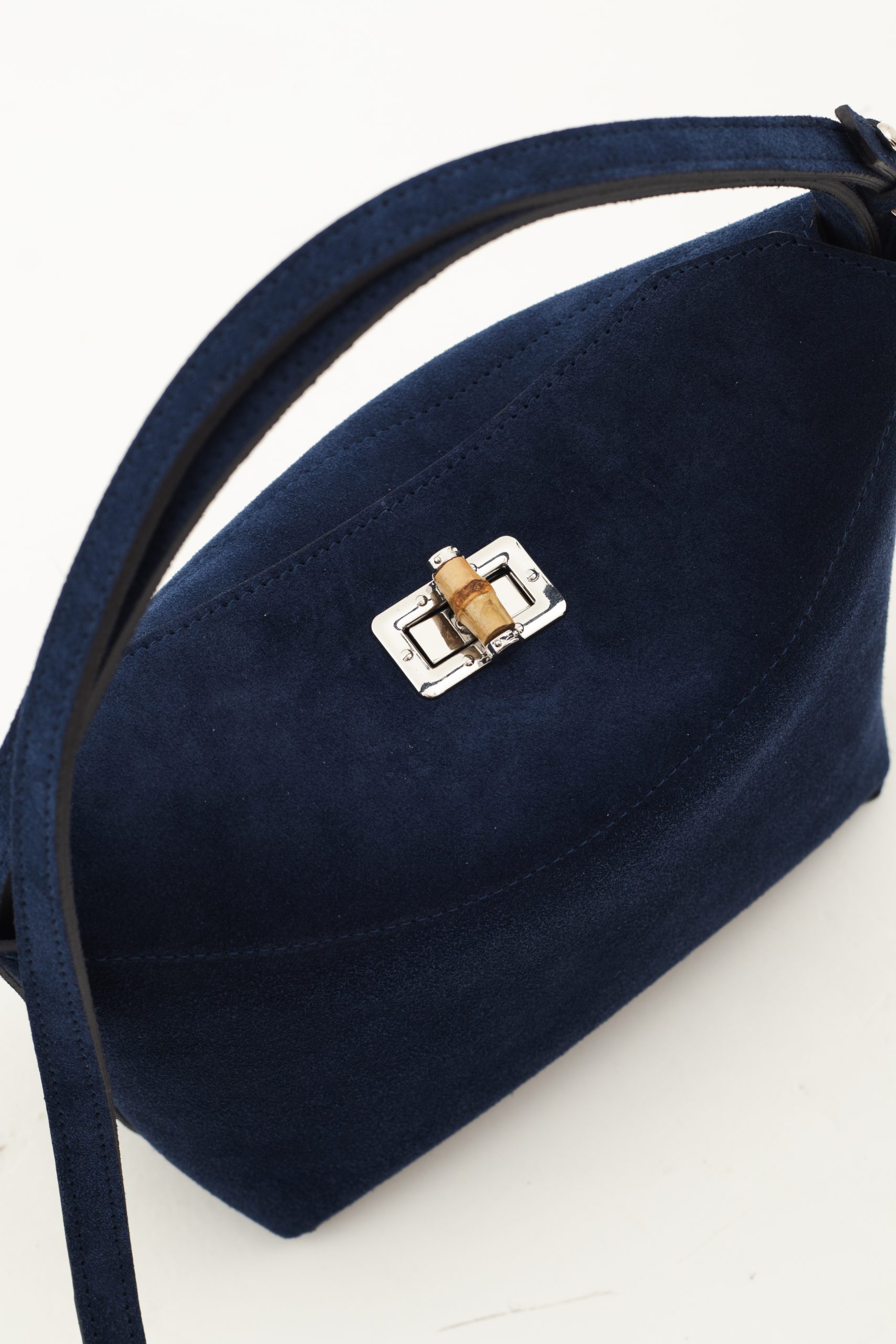 E S K E – cумка,яка закохує з першого погляду. Простота. М’яка текстура. Форма, що не потребує слів. Поворотна застібка з дерев’яною вставкою. Ремінець регулюється по довжині.  Виготовлена з натуральної замші. Просторий внутрішній відділ та кишеня додають зручності цьому аксесуару.